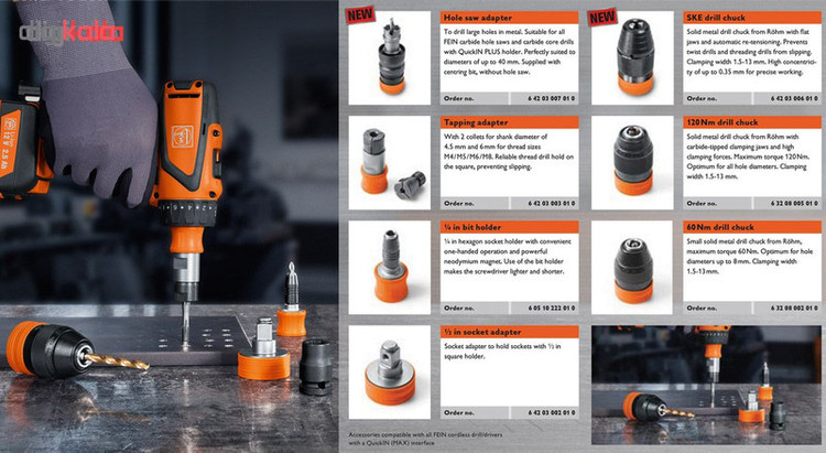 شرکت فاین (FEIN) در سال 1867 میلادی در شهر اشتوتگارت آلمان آغاز به کار و در سال 1895 اقدام به اختراع اولین دریل برقی دستی دنیا نمود. علی رغم گذشت 151 سال از شروع تولیدات شرکت فاین، این شرکت قویا به خاستگاه خود یعنی کشور آلمان متعهد بوده و تمامی محصولاتش را در Schwäbisch Gmünd کشور آلمان تولید می نماید. سری پیچ گوشتی خور دریل فاین دارای سایز ¼ اینچ شش ضلعی (hexagon) بوده، قابل استفاده با یک دست می باشد، مگنت قدرتمندی از جنس نئودیمیم دارد و استفاده از آن پیچ گوشتی شما را سبک تر و کوتاه تر می کند. این سری با تمامی دریل/پیچ گوشتی های فاین با رابط QuickIN و یا QuickIN MAX سازگار می باشد. می توانید این سری را برای استفاده با دریل های فاین مدل ASCM18QM، ASCM12QC، ASB18QC و ABS18QC خریداری نمایید.