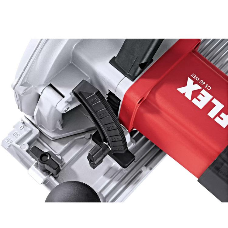 دستگاه CS 60 WET یک اره دیسکی سنگ بر تمام صنعتی و حرفه ای جهت برش انواع سنگ از محصولات شرکت «فلکس» (Flex) آلمان با بیش از 100 سال سابقه و مخترع سنگ فرز می باشد. این ابزار برای برش انواع سنگ نظیر گرانیت و مرمر، بتن و ...کاربرد دارد و برای ایجاد راه آب در سنگ کف پنجره، برش سنگ کانتر آشپزخانه، سنگ نما، موزائیک باغچه و محوطه سازی و بازسازی درز سنگ کف ایده آل می باشد. در این ابزار از آب برای خنک کاری موثر تیغه الماسه استفاده می شود. این ابزار حرفه ای به همراه کلید-فیوز GFCI یکپارچه با کابل برای محافظت کاربر در مقابل شوک الکتریکی ارائه می شود. در این ابزار تنظیم پیوسته عمق برش 0-60 میلی متر و 54 میلی متر با کمک ریل راهنما. در حالت فارسی بر 0-44 میلی متر و 38 میلی متر با کمک ریل راهنما میسر است و تنظیم پیوسته زاویه برش 0-45 درجه در حالت فارسی بر وجود دارد. خط برش 0/30/45 درجه حک شده روی صفحه کف برای تنظیم سریع دستگاه از دیگر قابلیت های این ابزار حرفه ای محسوب می گردد. شرکت فلکس در سال 1922 در منطقه Bad Cannstatt نزدیک اشتوتگارت آلمان توسط Ackermann و Schmitt تاسیس گردید. در همان سال سنگ فرز MS6 با شفت Flexible و در سال 1954 اولین سنگ فرز سرعت بالای دنیا تحت عنوان DL9 توسط شرکت فلکس اختراع شد. هم اکنون شرکت فلکس معروفترین و معتبرترین تولید کننده پولیشر برقی و شارژی محسوب گردیده و تخصص آن تولید انواع ابزارآلات برقی و شارژی در صنایع خودرو، کار با فلزات، پرداخت سنگ و ابزارآلات مرتبط با ساخت و ساز و بازسازی می باشد.