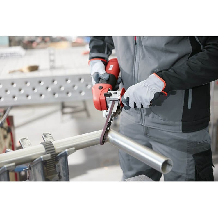 دستگاه BRE 8-4 INOX SET یک سنباده زن تمام صنعتی و حرفه ای با قابلیت تبدیل به سنباده زن لوله و سوهان تسمه ای از محصولات شرکت «فلکس» (Flex) آلمان با بیش از 100 سال سابقه و مخترع سنگ فرز می باشد. نکته تمایز این ابزار امکان تعویض سریع سره های این ابزار است که می توانید از دو قابلیت سنباده زن لوله و سوهان تسمه ای بهره مند شوید. در حقیقت با خرید یک ابزار عملا از قابلیت های دو ابزار سنباده زن لوله و سوهان تسمه ای استفاده می کنید. این ابزار جهت کار بر روی انواع فلزات بالاخص فولاد یا استیل ضد زنگ طراحی شده است. عرض نوار سنباده این ابزار بین 4-30 میلیمتر متغیر بوده و طول آن 533 میلیمتر می باشد. سرعت این ابزار نیز 1400-4000 دور در دقیقه متغیر است. این ابزار حرفه ای دارای کنترلر میکروپروسسور با قابلیت: انتخاب سرعت، ثبات سرعت زیر بار با تاکوژنراتور، استارت نرم، حفاظت در مقابل راه اندازی مجدد پس از قطع برق، حفاظت در مقابل اضافه بار و سیستم پایش بر دما می باشد. شرکت فلکس در سال 1922 در منطقه Bad Cannstatt نزدیک اشتوتگارت آلمان توسط Ackermann و Schmitt تاسیس گردید. در همان سال سنگ فرز MS6 با شفت Flexible و در سال 1954 اولین سنگ فرز سرعت بالای دنیا تحت عنوان DL9 توسط شرکت فلکس اختراع شد. هم اکنون شرکت فلکس معروفترین و معتبرترین تولید کننده پولیشر برقی و شارژی محسوب گردیده و تخصص آن تولید انواع ابزارآلات برقی و شارژی در صنایع خودرو، کار با فلزات، پرداخت سنگ و ابزارآلات مرتبط با ساخت و ساز و بازسازی می باشد.