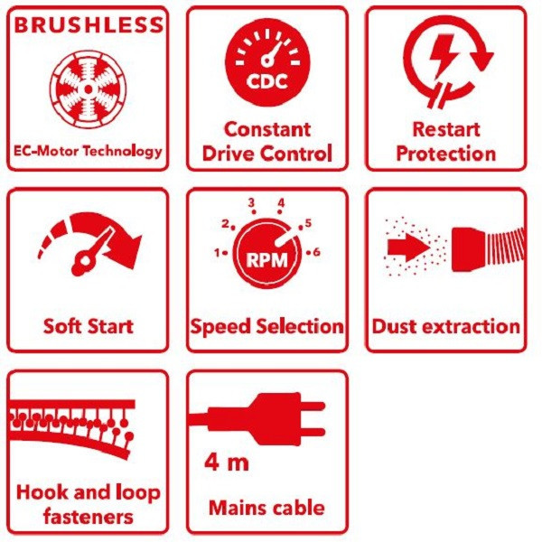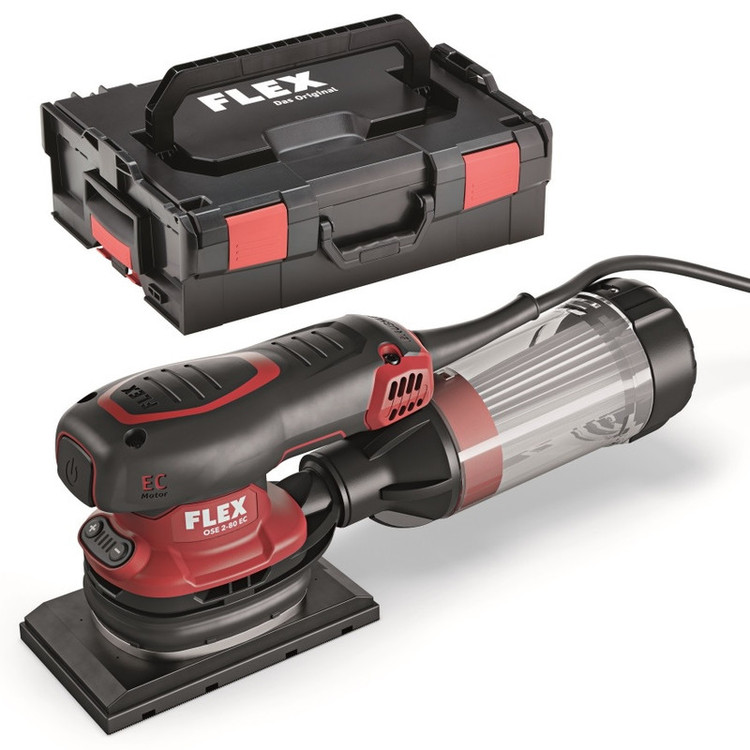دستگاه OSE 2-80 EC SET یک سنباده زن اوربیتال تمام صنعتی و حرفه ای از محصولات شرکت «فلکس» (Flex) آلمان با بیش از 100 سال سابقه و مخترع سنگ فرز می باشد. این سنباده زن 260 وات توان داشته و سرعت آن بین 8000-12000 دور در دقیقه قابل تنظیم می باشد. نرخ اوربیت یا نوسان این ابزار 16000-24000 نوسان در دقیقه بوده و میزان اوربیت آن دو میلیمتر می باشد. سایز پد این ابزار 80x130 میلیمتر بوده و قابلیت اتصال به سیستم مکش با اتصال 27 میلیمتر را دارد. این ابزار تنها 1.2 کیلو وزن داشته و در داخل کیف شکیل L-Boxx ارائه می گردد. شرکت فلکس در سال 1922 در منطقه Bad Cannstatt نزدیک اشتوتگارت آلمان توسط Ackermann و Schmitt تاسیس گردید. در همان سال سنگ فرز MS6 با شفت Flexible و در سال 1954 اولین سنگ فرز سرعت بالای دنیا تحت عنوان DL9 توسط شرکت فلکس اختراع شد. هم اکنون شرکت فلکس معروفترین و معتبرترین تولید کننده پولیشر برقی و شارژی محسوب گردیده و تخصص آن تولید انواع ابزارآلات برقی و شارژی در صنایع خودرو، کار با فلزات، پرداخت سنگ و ابزارآلات مرتبط با ساخت و ساز و بازسازی می باشد.