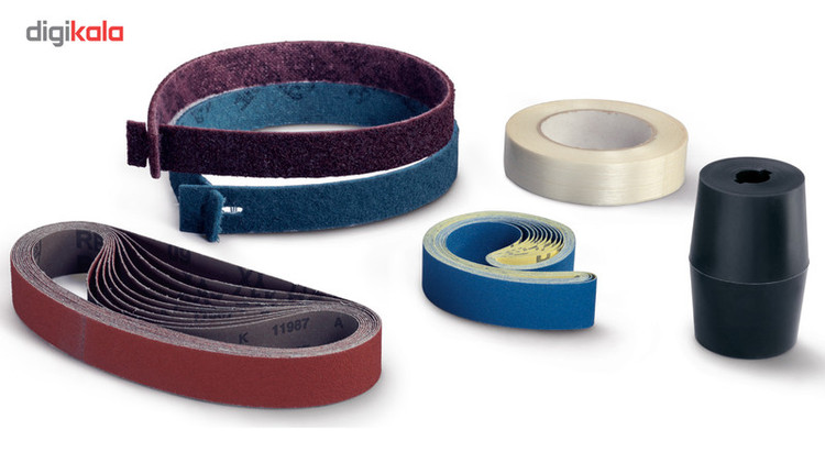 1 × غلطک مخصوص 10 × نوار سنباده با دانه بندی 180 10 × نوار سنباده با دانه بندی 120 1 × تسمه پشمی با دانه بندی متوسط 1 × تسمه پشمی با دانه بندی نرم 1 × حلقه نوار چسب