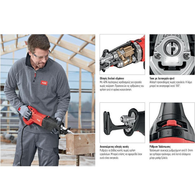 دستگاه RSP 13-32 یک اره رفت و برگشتی یا افقی بر تمام صنعتی و حرفه ای با قابلیت حرکت پاندولی از محصولات شرکت «فلکس» (Flex) آلمان با بیش از 100 سال سابقه و مخترع سنگ فرز می باشد. حرکت پاندولی این اره این ابزار را از سایر ابزارهای مشابه متمایز می سازد. حرکت پاندولی تیغ اره با اهرم بالای ابزار بین 0-3 میلیمتر قابل تنظیم بوده که امکان برش سریع چوب را میسر می سازد. این اره قدرتمند 1300وات توان داشته و سرعت آن بین 0-3000 دور در دقیقه قابل تنظیم می باشد. ساپورت اره با دکمه زیر ابزار قابل تنظیم یا جداسازی می باشد. این اره از سیستم محافظت در مقابل اضافه بار و soft star برخوردار می باشد. تیغه اره بدون نیاز به ابزار قابل تعویض بوده و ابزار از سیستم محافظت در برابر ارتعاش جهت افزایش ارگونومی ابزار برخوردار می باشد. این ابزار با 4.6 کیلوگرم وزن در داخل کیف شکیل ارائه می گردد. شرکت فلکس در سال 1922 در منطقه Bad Cannstatt نزدیک اشتوتگارت آلمان توسط Ackermann و Schmitt تاسیس گردید. در همان سال سنگ فرز MS6 با شفت Flexible و در سال 1954 اولین سنگ فرز سرعت بالای دنیا تحت عنوان DL9 توسط شرکت فلکس اختراع شد. هم اکنون شرکت فلکس معروفترین و معتبرترین تولید کننده پولیشر برقی و شارژی محسوب گردیده و تخصص آن تولید انواع ابزارآلات برقی و شارژی در صنایع خودرو، کار با فلزات، پرداخت سنگ و ابزارآلات مرتبط با ساخت و ساز و بازسازی می باشد.