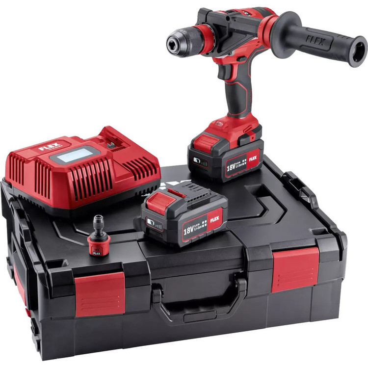 دریل پیچ گوشتی شارژی فلکس مدل DD 4G 18.0-EC/5.0 Set به همراه 2 عدد باتری 18 ولت 5 آمپر ساعت و شارژر