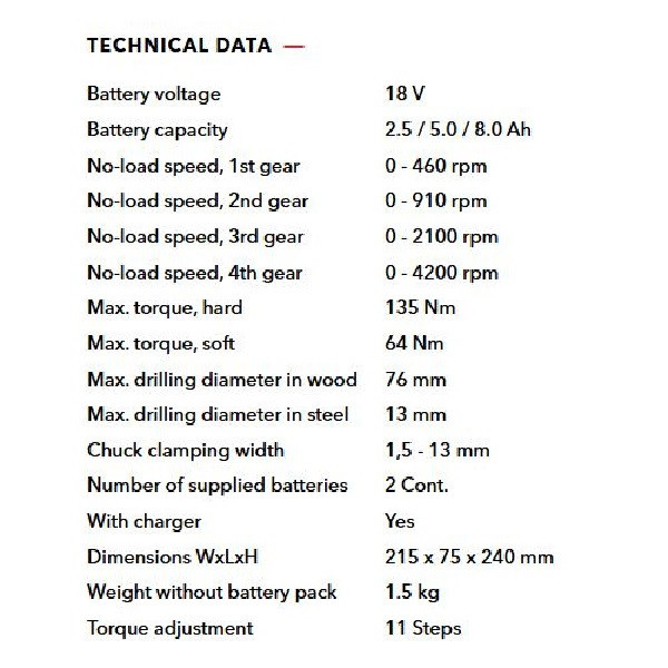 دستگاه DD 4G 18.0-EC/5.0 Set Set یک پیچ گوشتی دریل تمام صنعتی و حرفه ای از محصولات شرکت «فلکس» (Flex) با بیش از 100 سال سابقه و مخترع سنگ فرز می باشد. حداکثر گشتاور این ابزار 135نیوتن متر بوده که بسیار قدرتمند محسوب می گردد. این ابزار دارای سیستم Anti kick back بوده و در صورت گیر کردن مته با خاموش کردن دستگاه از پیچش مچ کاربر جلوگیری میکند. همچنین این ابزار از سیستم ترمز الکترونیکی برخوردار می باشد. این دریل پیچ گوشتی از موتور بدون ذغال برخوردار بوده که عمر و قدرت موتور را افزایش داده و مصرف انرژی آنرا کاهش می دهد. وزن آن با باتری تنها 2.2 کیلوگرم می باشد.این ابزار از تکنولوژی باتری لیتیوم یون استفاده کرده که منجر به افزایش طول عمر باتری و عملکرد آن خواهد شد. باتری های این ابزار 18V-5Ah می باشند که امکان استفاده بلند مدت از ابزار را میسر می سازند. سه نظام این ابزار جدا شونده ، تمام فلزی و اتوماتیک بوده و این ابزار داخل کیف های L-BOXX 136 فلکس ارائه شده می گردد. شرکت فلکس در سال 1922 در منطقه Bad Cannstatt نزدیک اشتوتگارت آلمان توسط Ackermann و Schmitt تاسیس گردید. در همان سال سنگ فرز MS6 با شفت Flexible و در سال 1954 اولین سنگ فرز سرعت بالای دنیا تحت عنوان DL9 توسط شرکت فلکس اختراع شد. هم اکنون شرکت فلکس معروفترین و معتبرترین تولید کننده پولیشر برقی و شارژی محسوب گردیده و تخصص آن تولید انواع ابزارآلات برقی و شارژی در صنایع خودرو، کار با فلزات، پرداخت سنگ و ابزارآلات مرتبط با ساخت و ساز و بازسازی می باشد.