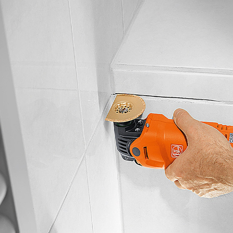 شرکت فاین در سال 1867 میلادی در شهر اشتوتگارت آلمان آغاز به کار، در سال 1895 اقدام به اختراع اولین دریل برقی دستی دنیا و در سال 1967 میلادی اولین ابزار ارتعاشی (چند کاره) دنیا را اختراع نمود. با توجه به تجربه 50 ساله فاین در تولید ابزار های ارتعاشی و تجهیزات جانبی آن، فاین ارائه دهنده جامع ترین ابزارآلات ارتعاشی برای کارهای داخلی ساختمان نظیر کار بر روی چوب، کابینت، انواع کف پوش، دیوارپوش، در و پنجره های چوبی، کاشی و سرامیک، کامپوزیت، ماکت سازی، کاربردهای هنری و دستی، صنعت خودرو و کشتی سازی و همچنین ارتپدی و آتشنشانی محسوب می گردد. فناوری های متعدد نظیر کوپلینگ ضد ارتعاش، نمایانگر تخصص منحصر به فرد فاین در تولید ابزار آلات ارتعاشی می باشد. با توجه به سرعت متغیر دستگاه و رنج گسترده تجهیزات جانبی مربوط به ابزارآلات ارتعاشی شرکت فاین، با بهکارگیری این محصولات میتوانید عملیاتی نظیر برش، سنبادهزنی، تراشیدن، سوهانکاری، پولیش و ... را روی مواد مختلف نظیر چوب، MDF، پلاستیک، PVC ، سنگ، سرامیک، کابینت فلزی، بدنه خودرو و یا سایر فلزات و ... انجام دهید. نسل جدید ابزارآلات ارتعاشی فاین دارای سیستم ضد ارتعاش می باشد؛ در این سیستم بدنه و موتور ابزار از هم تفکیک شده که نهایتا منجر به کاهش لرزش و صدا دستگاه و افزایش راحتی کار با آن می گردد. ابزار چند کاره فاین (FEIN) مدل MM 500 Plus Top، حدود 1.4 کیلوگرم وزن داشته و ساخت کشور آلمان می باشد. انرژی مورد نیاز خود را از برق شهری تامین می کند و توان موتور آن 350 وات است. تعداد ارتعاش تیغهی دستگاه از 11000 تا 19500 لرزشدردقیقه متغیر است؛ بهعبارت دیگر سرعت دستگاه با استفاده از یک ولوم 6 حالته که در پهلوی دستگاه قرار دارد، بسته به نوع عملکرد تغییر میکند. در کنار این محصول شرکت فاین، 30 قلم انواع تیغه، پد سنباده و ورق سنباده با کاربردهای مختلف قرار دارد. در نظر داشته باشید که برای تعویض تیغه یا پد روی دستگاه به آچار یا ابزار دیگری نیاز ندارید. با حرکت اهرم بالایی، پیچ نگهدارندهی ابزار (تیغه یا پد سنباده) آزاد میشود و شما میتوانید تیغهی دستگاه را عوض کنید. این محصول در یک کیف پلاستیکی بسیار محکم و شکیل با دو قفل فلزی قرار دارد.