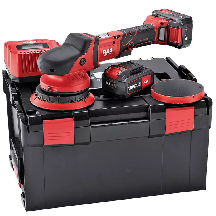 دستگاه پولیش اوربیتال شارژی فلکس مدل XFE 15 150 18.0-EC/5.0 Set، صفحه نگهدارنده 150 ، به همراه 2 عدد باتری و شارژر