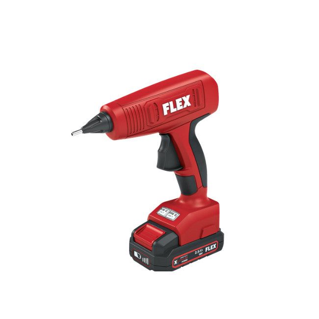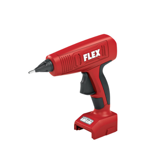 تفنگ چسب حرارتی GG 200 18 یک دستگاه چسب حرارتی شارژی پر قدرت و حرفه ای از محصولات شرکت «فلکس» (Flex) آلمان با بیش از 100 سال سابقه و مخترع سنگ فرز می باشد. این دستگاه شارژی قابل استفاده با باتری های 18 ولت شرکت فلکس میباشد. این دستگاه یک تفنگ چسب حرارتی شارژی قدرتمند با 2 تنظیم دمای 130 درجه/200 درجه سانتی گراد می باشد. سرعت چسب زنی 20 گرم در دقیقه این دستگاه، امکان انجام سریع کار را فراهم می نماید. گرم و آماده به کار شدن سریع دستگاه در عرض 2 دقیقه به لطف وجود المنتهای حرارتی با کنترل الکترونیکی فراهم می شود .باتری و شارژر همراه دستگاه ارائه نمی گردد ودر صورتی که از قبل باتری 18 ولت فلکس را در اختیار ندارید لازم است به صورت جداگانه تهیه شود. شرکت فلکس در سال 1922 در منطقه Bad Cannstatt نزدیک اشتوتگارت آلمان توسط Ackermann و Schmitt تاسیس گردید. در همان سال سنگ فرز MS6 با شفت Flexible و در سال 1954 اولین سنگ فرز سرعت بالای دنیا تحت عنوان DL9 توسط شرکت فلکس اختراع شد. هم اکنون شرکت فلکس معروفترین و معتبرترین تولید کننده پولیشر برقی و شارژی محسوب گردیده و تخصص آن تولید انواع ابزارآلات برقی و شارژی در صنایع خودرو، کار با فلزات، پرداخت سنگ و ابزارآلات مرتبط با ساخت و ساز و بازسازی می باشد.