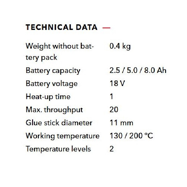 تفنگ چسب حرارتی GG 200 18 یک دستگاه چسب حرارتی شارژی پر قدرت و حرفه ای از محصولات شرکت «فلکس» (Flex) آلمان با بیش از 100 سال سابقه و مخترع سنگ فرز می باشد. این دستگاه شارژی قابل استفاده با باتری های 18 ولت شرکت فلکس میباشد. این دستگاه یک تفنگ چسب حرارتی شارژی قدرتمند با 2 تنظیم دمای 130 درجه/200 درجه سانتی گراد می باشد. سرعت چسب زنی 20 گرم در دقیقه این دستگاه، امکان انجام سریع کار را فراهم می نماید. گرم و آماده به کار شدن سریع دستگاه در عرض 2 دقیقه به لطف وجود المنتهای حرارتی با کنترل الکترونیکی فراهم می شود .باتری و شارژر همراه دستگاه ارائه نمی گردد ودر صورتی که از قبل باتری 18 ولت فلکس را در اختیار ندارید لازم است به صورت جداگانه تهیه شود. شرکت فلکس در سال 1922 در منطقه Bad Cannstatt نزدیک اشتوتگارت آلمان توسط Ackermann و Schmitt تاسیس گردید. در همان سال سنگ فرز MS6 با شفت Flexible و در سال 1954 اولین سنگ فرز سرعت بالای دنیا تحت عنوان DL9 توسط شرکت فلکس اختراع شد. هم اکنون شرکت فلکس معروفترین و معتبرترین تولید کننده پولیشر برقی و شارژی محسوب گردیده و تخصص آن تولید انواع ابزارآلات برقی و شارژی در صنایع خودرو، کار با فلزات، پرداخت سنگ و ابزارآلات مرتبط با ساخت و ساز و بازسازی می باشد.