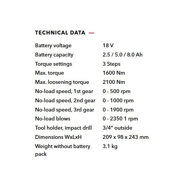 دستگاه IW 3/4" 1600 18-EC/5.0 Sett یک آچار بکس شارژی تمام صنعتی و حرفه ای از محصولات شرکت «فلکس» (Flex) با بیش از 100 سال سابقه و مخترع سنگ فرز می باشد. طراحی و ساخت این آچار بکس جهت کار در شرایط سخت و مداوم می باشد. حداکثر گشتاور این آچار با بهره گیری از موتور بدون ذغال در حالت بستن 1600 و در حالت باز کردن 2100 نیوتون متر می باشد. این آچار ضربه ای قابلیت تنظیم الکترونیکی گشتاور در 3 مرحله تنظیم دارد. با تنظیم گشتاور مورد نظر، پیچ یا مهره شما هیچ گاه بریده نشده و گشتاور مناسب به پیچ یا مهره شما اعمال خواهد شد؛ لذا این آچار ضربه ای در طیف وسیعی از کاربری ها تا 1600 نیوتن متر قابل استفاده خواهد بود و شما را از خرید آچارهای متعدد بی نیاز می سازد. سرعت بدون بار این ابزار 1900-0 دور در دقیقه و نرخ ضربه آن 2350-0 ضربه در دقیقه می باشد. ابزار گیر این آچار بکس 3/4 اینچ است. وزن این آچار با توجه به گشتاور بالای ابزار احتساب باتری تنها 3.8کیلوگرم بوده و انرژی مورد نیاز خود را از باتری لیتیومی 18 ولت با ظرفیت 5 آمپر ساعت تامین می کند. داخل کیف بسیار محکم این ابزار 2 عدد باتری لیتیومی 18 ولت با ظرفیت 5 آمپرساعت و یک عدد شارژر سریع وجود دارد. این ابزار از موتور بدون ذغال بهره گرفته که کارایی و عمر دستگاه راه افزایش میدهد. شرکت فلکس در سال 1922 در منطقه Bad Cannstatt نزدیک اشتوتگارت آلمان توسط Ackermann و Schmitt تاسیس گردید. در همان سال سنگ فرز MS6 با شفت Flexible و در سال 1954 اولین سنگ فرز سرعت بالای دنیا تحت عنوان DL9 توسط شرکت فلکس اختراع شد.