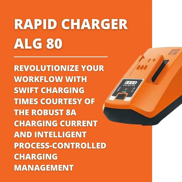 شارژر سریع ALG 80 قابلیت شارژ کلیه باتریهای ابزار آلات فاین را دارد . این شارژر با جریان شارژ بالای 8 آمپر و فرآیند کنترل شده مدیریت شارژ، زمان شارژ کوتاهی را ایجاد می کند.این دستگاه دارای LED بزرگ با نشانگر وضعیت شارژ به همراه پورت USB برای شارژ دستگاه های الکترونیکی کوچک مانند گوشی های هوشمند یا تبلت ها می باشد . زمان شارژ (80% حداکثر ظرفیت): برای باتری های 12 و 18 ولت 3 آمپرساعت 31 دقیقه، 12 و 18 ولت 6 آمپر ساعت 38 دقیقه، 18 ولت 5.2 آمپرساعت 33 دقیقه می باشد. شرکت فاین (FEIN) در سال 1867 میلادی در شهر اشتوتگارت آلمان آغاز به کار و در سال 1895 میلادی اقدام به اختراع اولین دریل برقی دستی دنیا و در سال 1967 اولین ابزار ارتعاشی دنیا را اختراع نمود و همواره در نوآوری و اختراعات جدید صنعت ابزار دنیا پیشرو بوده است.