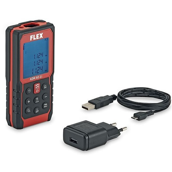 دستگاه ADM 60 Li یک فاصله یاب حرفه ای از محصولات شرکت «فلکس» (Flex) آلمان با بیش از 100 سال سابقه و مخترع سنگ فرز می باشد. این ابزار جهت اندازه گیری فاصله در رنج 150 سانتیمتر تا 60 متر میباشد. دقت این ابزار 3 میلیمتر در کلاس لیزر 2 میباشد. شرکت فلکس در سال 1922 در منطقه Bad Cannstatt نزدیک اشتوتگارت آلمان توسط Ackermann و Schmitt تاسیس گردید. در همان سال سنگ فرز MS6 با شفت Flexible و در سال 1954 اولین سنگ فرز سرعت بالای دنیا تحت عنوان DL9 توسط شرکت فلکس اختراع شد. هم اکنون شرکت فلکس معروفترین و معتبرترین تولید کننده پولیشر برقی و شارژی محسوب گردیده و تخصص آن تولید انواع ابزارآلات برقی و شارژی در صنایع خودرو، کار با فلزات، پرداخت سنگ و ابزارآلات مرتبط با ساخت و ساز و بازسازی می باشد.
