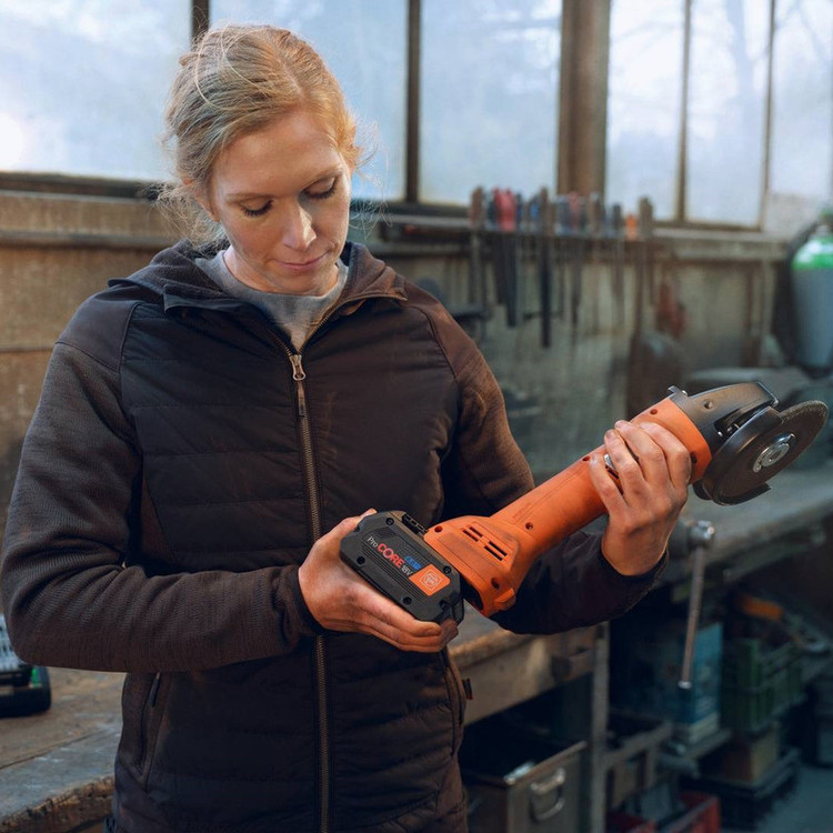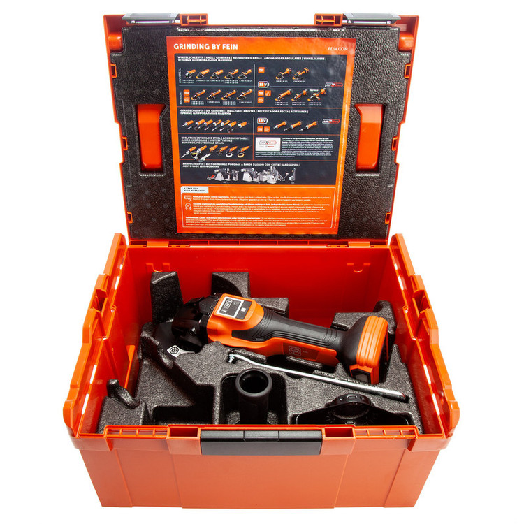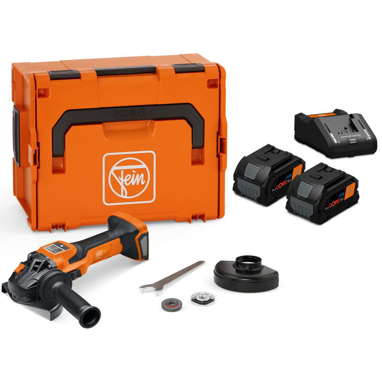 باتری 18V-8Ah دو عدد (Li-ion / ProCORE ) و شارژر GAL 18v-160 باتری- 1 عدد گارد- 1 عدد دسته ضد ارتعاش 1 عدد آچار مخصوص- 1عدد مهره quick-in بدون نیاز به آچار - 1 عدد گارد ایمنی مخصوص برش-کیف شکیل L-BOXX 238