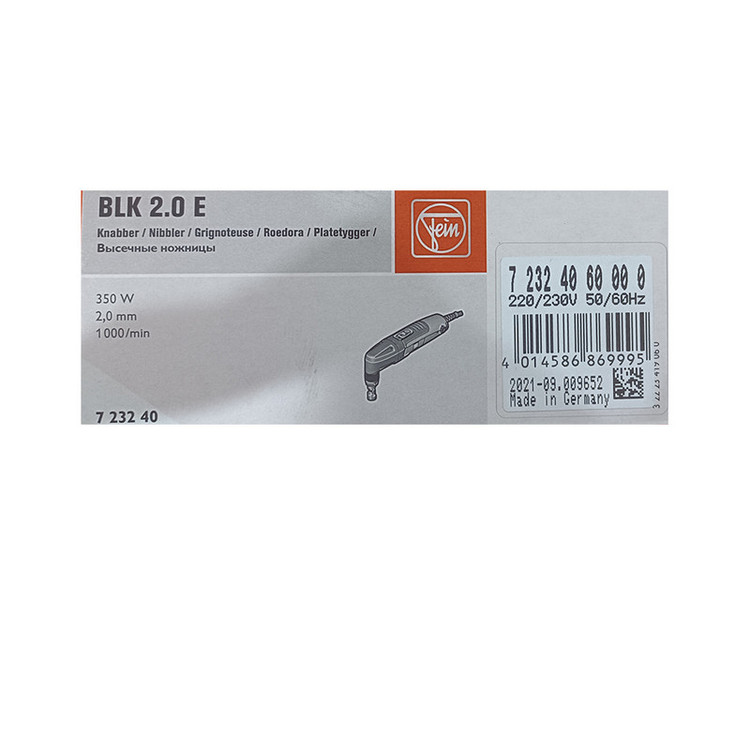 دستگاه برش ورق فاین مدل Nibbler BLK 2.0E ابزار مناسبی برای برش ورقهای فولادی تا ضخامت 2 میلیمتر، ورقهای فلزات غیر آهنی تا ضخامت 2.5 میلیمتر و استیل ضد زنگ تا 1 میلیمتر می باشد. این دستگاه با استفاده از سنبه و ماتریس مخصوص و با سرعت بین 500 الی 1000 ضربه در دقیقه حداکثر سرعت برشی معادل 1 متر در دقیقه ایجاد کرده و با راحتی و با بهترین کیفیت ممکن اقدام به برش ورق می نماید. این دستگاه با برق 220 ولت شهری کار کرده و با توان ورودی 350 وات از قدرت لازم برای برش ورق های فلزی و غیر فلزی برخوردارر است . این دستگاه تماما ساخت آلمان بوده و از کیفیت ساخت بینظیری برخوردار بوده و ابزار مناسبی برای کاربران حرفه ای می باشد. شرکت فاین (FEIN) در سال 1867 میلادی در شهر اشتوتگارت آلمان آغاز به کار و در سال 1895 میلادی اقدام به اختراع اولین دریل برقی دستی دنیا و در سال 1906 اولین سنگ دستی دنیا را اختراع نمود. این شرکت در سال 2016 میلادی برای اولین بار مینی فرز با قدرت 1700 وات را روانه بازار کرد و همواره در نوآوری و اختراعات جدید صنعت ابزار دنیا پیشرو بوده است. علی رغم گذشت 155 سال از شروع تولیدات شرکت فاین، این شرکت قویا به خاستگاه خود یعنی کشور آلمان متعهد بوده و تمامی محصولاتش را در Schwäbisch Gmünd کشور آلمان تولید می نماید.