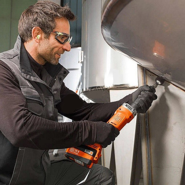 فرز انگشتی گلو بلند شارژی فاین مدل AGSZ 18-280 LBL یک فرز حرفه ای با مشخصات فنی خاص محسوب می گردد. طراحی و ساخت این فرز که تماما ساخت کشور آلمان بوده، جهت کار در شرایط سخت و مداوم می باشد. این فرز با استفاده از موتورهای Brushless نسل جدید فاین FEIN PowerDrive)) عمر بسیار طولانی تری نسبت به محصولات مشابه دارد. محفظه کاملا بسته موتور از موتور در مقابل گرد و غبار محافظت می نماید. موتور بدون نیاز به تعمیر نگهداری بوده و دارای پره های خلاقانه به منظور خنک کردن موتور و سیستم نظارت بر دما می باشد . این دستگاه از باتری های Li-ion فاین با نام FEIN HighPower استفاده می نماید. این باتری ها توان تامین نیروی مداوم را داشته و 75% نسبت به باتری های Li-ion مشابه جریان بیشتری را تامین می نمایند. سرعت این فرز انگشتی بین 9000- 28000 دور در دقیقه قابل تنظیم بوده و سایز کلت آن 6 میلیمتر می باشد. این دستگاه دارای ویژگیهای گسترده حفاظت از کاربر شامل استارت نرم، حفاظت راهاندازی مجدد، حفاظت الکترونیکی اضافه بار می باشد. در این دستگاه از کلت های نوآورانه با فلنج مخصوص به منظور محافظت از قطعه کار و جلوگیری از سر خوردن آچار هنگام تعویض ابزار استفاده شده است . انجام کار با دستگاه به لطف ابعاد مناسب، طراحی جمع و جور، وزن کم و متعادل بدون خستگی می باشد. داخل کیف پلاستیکی شکیل و بسیار مقاوم این دستگاه دو عدد باتری 18 ولت ، شارژر مخصوص، يك عدد کولت سایز 6، آچار سایز SW13 و آچار سایز SW17 وجود دارد. شرکت فاین (FEIN) در سال 1867 میلادی در شهر اشتوتگارت آلمان آغاز به کار و در سال 1895 میلادی اقدام به اختراع اولین دریل برقی دستی دنیا و در سال 1906 اولین سنگ دستی دنیا را اختراع نمود. این شرکت در سال 2016 میلادی برای اولین بار مینی فرز با قدرت 1700 وات را روانه بازار کرد و همواره در نوآوری و اختراعات جدید صنعت ابزار دنیا پیشرو بوده است. علی رغم گذشت 155 سال از شروع تولیدات شرکت فاین، این شرکت قویا به خاستگاه خود یعنی کشور آلمان متعهد بوده و تمامی محصولاتش را در Schwäbisch Gmünd کشور آلمان تولید می نماید.