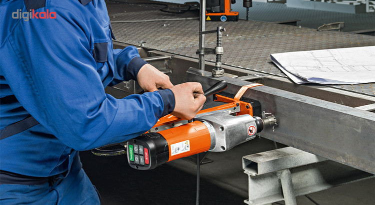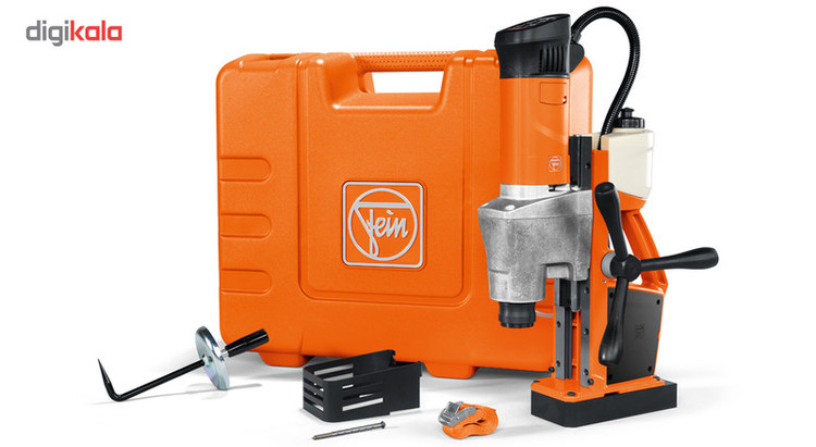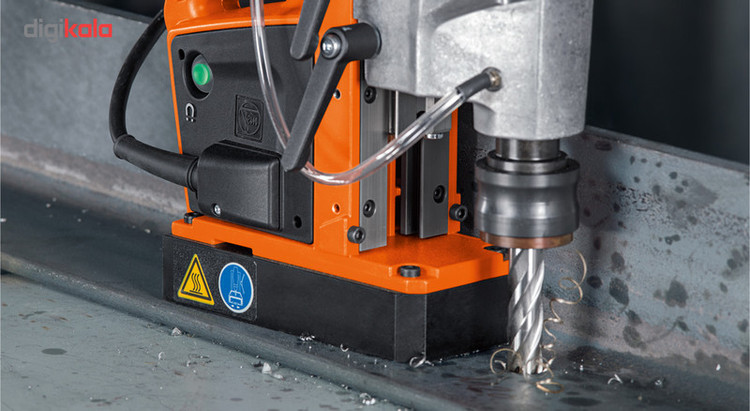 این دریل مغناطیسی دارای سیستم خنک کار - روان کار متصل با دستگاه می باشد به نحوی که مایع خنک کار - روان کار به واسطه نیروی وزن به صورت خودکار به محل انجام عملیات گردبٌری جاری خواهد شد و فقط در موارد استفاده به صورت افقی و یا بالای سر نیاز به استفاده از مایع روان کار - خنک کار به صورت دستی خواهید داشت. سیستم ریل این دریل مغناطیسی جناغی دوبل می باشد که امکان استفاده جهت کار مداوم، حرفه ای و با دقت بالا را فراهم ساخته و باعث می شود تا پس از گذشت زمان و استفاده مداوم از دستگاه، دقت آن کاهش نیافته و یا به لرزش نیافتد. سیستم تعویض مته این دستگاه QuickIN می باشد که به شما این امکان را می دهد تا بدون نیاز به ابزار، در کسری از ثانیه و با یک حرکت مته را در مکان مناسب قرار دهید. این دریل قابلیت چرخش به صورت ساعت گرد و پاد ساعت گرد را دارد و بازه کل کورس این دریل مغناطیسی 315 میلیمتر بوده که به شما آزادی عمل زیادی در انتخاب ابزارهای دریل کاری خواهد داد. با توجه به نسبت بهینه قدرت مگنت به وزن این دستگاه شما به راحتی قادر خواهید بود تا از آن حتی در بالای سر خود و یا به صورت افقی استفاده کنید. وزن اين دريل مغناطیسی 13.2 كيلوگرم بوده و طول كابل آن 4 متر مي باشد. رابط کاربری دستگاه در راستای دید کاربر در حین انجام عملیات می باشد و همچنین این دستگاه به نمایشگر میزان چسبندگی مگنت مجهز است به نحوی که چراغ مگنت در شرایط عدم وجود نیروی کافی جهت نگه داشتن دستگاه به صورت چشمک زن در می آید. درون کیف بسیار محکم این دستگاه یک مخزن مایع خنک کار - روان کار، یک تسمه نگهدارنده، یک پین مرکزی، یک گارد محافظ و یک قلاب پلیسه گیری ارائه گرديده است. شركت TCG (گروه مشاوران تهران)، نماينده انحصاري ابزارآلات فاين (FEIN) آلمان در ايران بوده كه اين نماينده در سايت www.fein.com نيز معرفي شده است. خدمات گارانتي و پس از فروش محصولات فاين (FEIN) در مركز تعميرات TCG ارائه مي گردد.