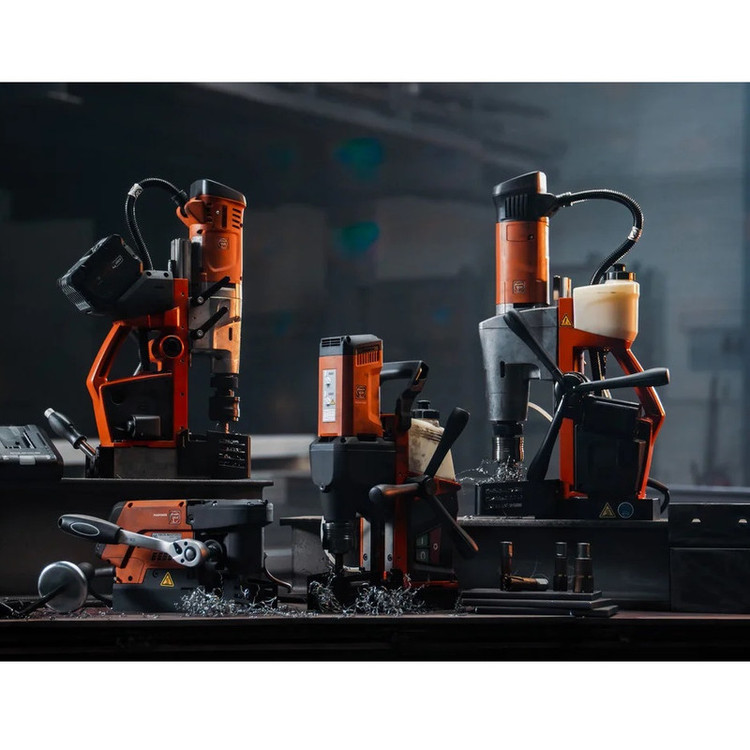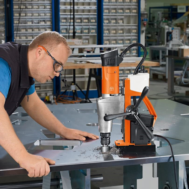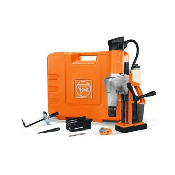 دریل مغناطیسی مدل KBM 50 AUTO QW یک دریل مغناطیسی حرفه ای و صنعتی با مشخصات فنی خاص محسوب می گردد. طراحی و ساخت این دریل که تماما ساخت کشور آلمان بوده، جهت کار در شرایط سخت و مداوم است و تمایز اصلی این مدل با دیگر دستگاه های دریل مغناطیسی موجود در بازار مجهز بودن به سیستم بار دهی اتوماتیک و هوشمند می باشد. به این معنا که ابزار بدون نیاز به اعمال نیرو از جانب کاربر و به صورت خودکار در داخل قطعه کار نفوذ کرده و عملیات گردبُری را انجام خواهد داد. امکان گردبری حرفه ای تا قطر 50 میلیمتر (50 میلیمتر با مته های الماسه و تا قطر 40 میلیمتر با مته های HSS) در فلزات و دریل کاری تا قطر 23 میلیمتر را مهیا می سازد.دارای سیستم خنک کار - روان کار متصل با دستگاه می باشد به نحوی که مایع خنک کار - روان کار به واسطه نیروی وزن به صورت خودکار به محل انجام عملیات گردبٌری جاری خواهد شد و فقط در موارد استفاده به صورت افقی و یا بالای سر نیاز به استفاده از مایع روان کار - خنک کار به صورت دستی خواهید داشت. که امکان استفاده جهت کار مداوم، حرفه ای و با دقت بالا را فراهم ساخته و باعث می شود تا پس از گذشت زمان و استفاده مداوم از دستگاه، دقت آن کاهش نیافته و یا به لرزش نیافتد. ابزارگیر گرد بر 3/4 اینچ Weldon میباشد. این دریل قابلیت چرخش به صورت ساعت گرد و پاد ساعت گرد را دارد و بازه کل کورس این دریل مغناطیسی 315 میلیمتر بوده که به شما آزادی عمل زیادی در انتخاب ابزارهای دریل کاری خواهد داد. با توجه به نسبت بهینه قدرت مگنت به وزن این دستگاه شما به راحتی قادر خواهید بود تا از آن حتی در بالای سر خود و یا به صورت افقی استفاده کنید. رابط کاربری دستگاه در راستای دید کاربر در حین انجام عملیات می باشد و همچنین این دستگاه به نمایشگر میزان چسبندگی مگنت مجهز است به نحوی که چراغ مگنت در شرایط عدم وجود نیروی کافی جهت نگه داشتن دستگاه به صورت چشمک زن در می آید. شرکت فاین (FEIN) در سال 1867 میلادی در شهر اشتوتگارت آلمان آغاز به کار و در سال 1895 اقدام به اختراع اولین دریل برقی دستی دنیا و در سال 1909 اولین دریل مغناطیسی دنیا را اختراع نمود. علی رغم گذشت 151 سال از شروع تولیدات شرکت فاین، این شرکت قویا به خاستگاه خود یعنی کشور آلمان متعهد بوده و تمامی محصولاتش را در Schwäbisch Gmünd کشور آلمان تولید می نماید.