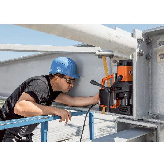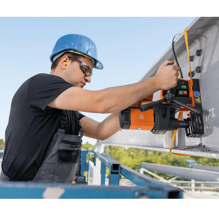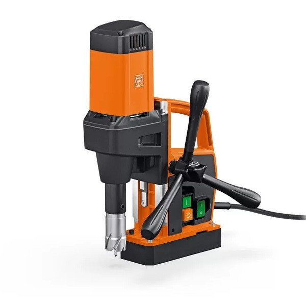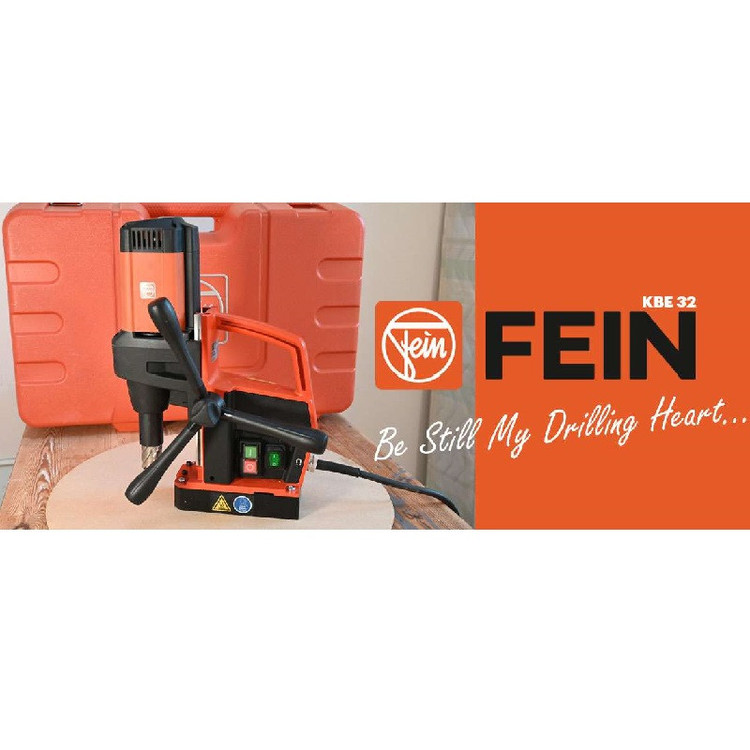 شرکت فاین (FEIN) در سال 1867 میلادی در شهر اشتوتگارت آلمان آغاز به کار و در سال 1895 اقدام به اختراع اولین دریل برقی دستی دنیا و در سال 1909 اولین دریل مغناطیسی دنیا را اختراع نمود. علی رغم گذشت 151 سال از شروع تولیدات شرکت فاین، این شرکت قویا به خاستگاه خود یعنی کشور آلمان متعهد بوده و تمامی محصولاتش را در Schwäbisch Gmünd کشور آلمان تولید می نماید.دریل مغناطیسی مدل KBE 32 یک دریل مغناطیسی حرفه ای و صنعتی محسوب می گردد. این ابزار جهت کار در شرایط سخت و مداوم بوده و با توجه به طراحی جمع و جور آن مناسب برای عملیات نصب و استفاده در پروژه های مختلف می باشد. این دریل مغناطیسی از سرعت بدون بار700 دور در دقیقه برخوردار بوده و توان موتور آن 1200 وات می باشد که امکان گردبری حرفه ای تا قطر 32 میلیمتر در فلزات و دریل کاری تا عمق 50 میلیمتر را مهیا می سازد. سیستم ریل این دریل مغناطیسی جناغی دوبل می باشد که امکان استفاده جهت کار مداوم، حرفه ای و با دقت بالا را فراهم ساخته و باعث می شود تا پس از گذشت زمان و استفاده مداوم از دستگاه، دقت آن کاهش نیافته و یا به لرزش نیافتد. ابزار گیر این دستگاه in Weldon 3/4 می باشد . بازه کل کورس این دریل مغناطیسی 90 میلیمتر بوده که به شما آزادی عمل زیادی در انتخاب ابزارهای دریل کاری خواهد داد. با توجه به نسبت بهینه قدرت مگنت به وزن این دستگاه شما به راحتی قادر خواهید بود تا از آن حتی در بالای سر خود و یا به صورت افقی استفاده کنید. وزن این دریل مغناطیسی تنها 10.8 کیلوگرم بوده و طول کابل آن 3 متر می باشد. درون کیف بسیار محکم این دستگاه یک اسپری (پمپ) مایع خنک کننده - ، تسمه نگهدارنده، یک عدد پین مرکزی، گارد محافظ، یگ نگهدارنده پمپ مایع خنک کننده و یک عدد آچار 5 میلی متر وجود دارد.