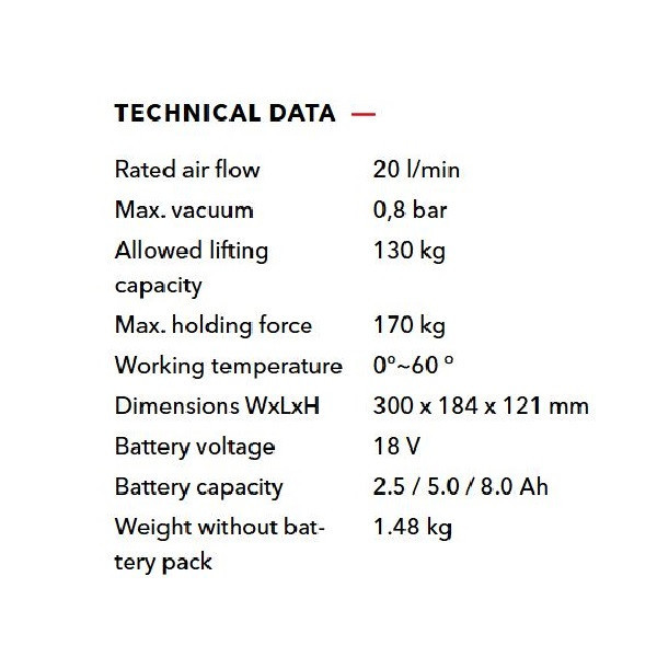 دستگاه VLP 18.0 C یک قاپک شارژی با کیفیت و حرفه ای از محصولات شرکت «فلکس» (Flex) آلمان با بیش از 100 سال سابقه و مخترع سنگ فرز می باشد.قاپک VLP 18.0 C با طراحی ارگونومیک تقریباً هر جسمی را بلند و جابجا کرده و بدون زحمت در جای خود قرار می دهد.این قاپک برای جابجایی مواد مختلف مانند کاشی، پانل های دیوار ، سرامیک، بلوک های بتنی، شیشه، فلزات، مبلمان و .... ایده آل است. عملکرد قدرتمند آن جابجایی کارآمد و قابل اطمینان اشیا سنگین را تضمین می نماید. این دستگاه با توجه به شرایط محیطی دارای نیروی نگهدارنده تا حداکثر 170 کیلوگرم است و تقریباً روی هر سطحی - حتی سطوح دارای گرد و غبار، خشن یا نیمه متخلخل را به راحتی می مکد. ظرفیت جابجایی مجاز این دستگاه 130 کیلوگرم است. ایمنی کار در این دستگاه بالاترین اولویت را دارد. دستگاه دارای عملکرد مکش خودکار است و نمایشگر دیجیتال به طور مداوم اطلاعاتی در مورد فشار منفی فعلی ارائه می دهد. شرکت فلکس در سال 1922 در منطقه Bad Cannstatt نزدیک اشتوتگارت آلمان توسط Ackermann و Schmitt تاسیس گردید. در همان سال سنگ فرز MS6 با شفت Flexible و در سال 1954 اولین سنگ فرز سرعت بالای دنیا تحت عنوان DL9 توسط شرکت فلکس اختراع شد. هم اکنون شرکت فلکس معروفترین و معتبرترین تولید کننده پولیشر برقی و شارژی محسوب گردیده و تخصص آن تولید انواع ابزارآلات برقی و شارژی در صنایع خودرو، کار با فلزات، پرداخت سنگ و ابزارآلات مرتبط با ساخت و ساز و بازسازی و کشاورزی و باغبانی می باشد.