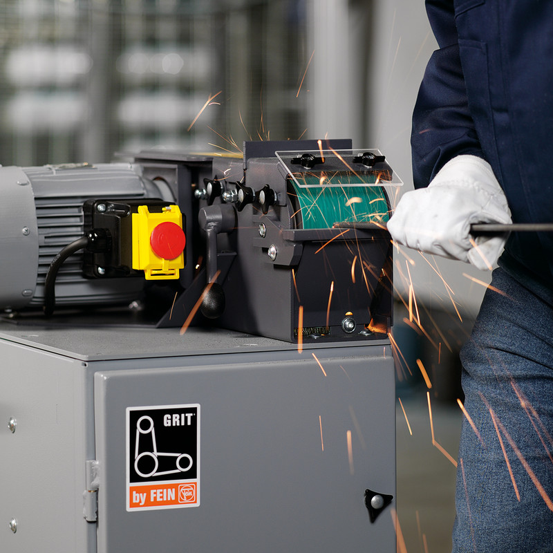 دستگاه GRIT GI100 یک دستگاه سنگ زنی تسمه ای رومیزی با سایز نوار سنباده 1000x100 میلیمتر می باشد که این نوار سنباده به وسیله یک موتور سه فاز با توان 1.5 کیلووات با سرعت 3000 دور در دقیقه به گردش در می آید. GRIT GI100 یک دستگاه سنگ زنی تسمه ای قدرتمند است که قابلیت استفاده برای کاربرد های صنعتی و کارگاهی را دارا می باشد. همچنین این دستگاه قابلیت اتصال به سیستم مکش را داشته و با توجه به سرعت و کارایی بالاتر می تواند جایگزین بسیار مناسبی برای سنگ های رومیزی و ایستاده باشد. شرکت فاین(FEIN) در سال 1867 میلادی در شهر اشتوتگارت آلمان آغاز به کار و در سال 1895 میلادی اقدام به اختراع اولین دریل برقی دستی دنیا نمود. این شرکت در زمینه تولید دستگاه های سنگ زنی تسمه ای تحت برند FEIN–GRIT نظیر دستگاه های پولیش و سنگ زنی تسمه ای سنترلس لوله، دستگاه پولیش و سنگ زنی پروفیل و قوطی، دستگاه ناخانی زن سر لوله و ... پیشرو می باشد.