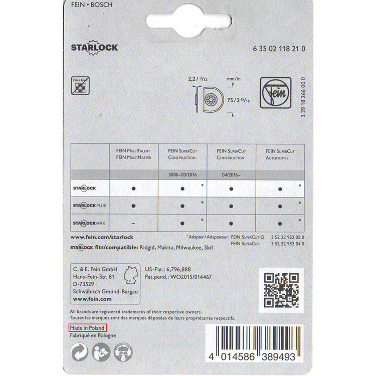 شركت فاين (FEIN) در سال 1867 ميلادي در شهر اشتوتگارت آلمان آغاز به كار، در سال 1895 اقدام به اختراع اولين دريل برقي دستي دنيا و در سال 1967 ميلادي اولين ابزار ارتعاشي (چند كاره) دنيا را اختراع نمود. با توجه به تجربه 50 ساله فاين (FEIN) در توليد ابزار هاي ارتعاشي و تجهيزات جانبي آن، فاين ارائه دهنده جامع ترين ابزارآلات ارتعاشي براي كارهاي داخلي ساختمان و كاربردهاي ارتوپدي محسوب مي گردد. همواره يكي از نگراني هاي خريداران ابزارهاي چند كاره وجود تجهيزات جانبي متنوع جهت استفاده با ابزار خريداري شده مي باشد تا بتواند اين ابزارها را به معناي واقعي به يك ابزار همه كاره تبديل نمايد كه شركت فاين با توجه به سابقه خود در زمينه توليد اين ابزارها و تجهيزات جانبي مربوط به آن اين نگراني را مرتفع نموده و به عنوان مخترع اين سيستم در دنيا همواره در اين زمينه پيشرو بوده است. تيغه كاربيدي نيم گرد با قطر 75 ميليمتر يكي از كاربردي ترين تجهيزات جانبي قابل استفاده با ابزار همه كاره فاين مي باشد كه مي توانيد از آن براي برش بند كاشي و ايجاد شيار در گچ، بتن متخلخل و ساير مواد ساختماني مشابه استفاده كنيد. همچنين اين تيغه براي بازسازي بند عرشه كشتي مناسب مي باشد. لازم به ذکر است این تیغه برای برش اپوکسی رزین و یا اتصالات سیمانی خیلی سخت مناسب نیست. همچنین این تیغه جایگزین اقتصادی ای برای تیغه های الماسه می باشد. عرض برش اين تيغه حدودا 2.2 ميليمتر بوده و دليل طراحي اين تيغه به صورت نيم گرد قابليت استفاده آن در كنج ها و گوشه ها مي باشد.