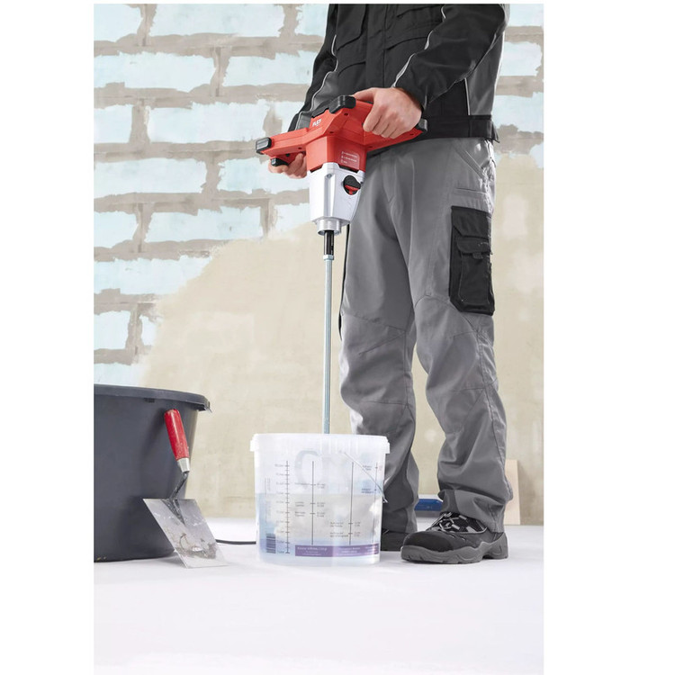 دستگاه MXE 1202 + WR2 140 یک همزن یا میکسر تمام صنعتی و حرفه ای از محصولات شرکت «فلکس» (Flex) آلمان با بیش از 100 سال سابقه و مخترع سنگ فرز می باشد. این ابزار می تواند برای مخلوط کردن چسب کاشی، دوغاب، ترکیب پرکننده، چسب، گچ تمام شده، ملات چسب و ... در امور ساختمانی مورد استفاده قرار گیرد. این همزن حرفه ای دو گیربکسه بوده که قابلیت آن جهت میکس کردن انواع مواد را افزایش داده و گشتاور اعمال شده را بهینه می سازد. این همزن قدرتمند 1200 وات توان داشته و سرعت همزن در هر گیربکس در سه مرحله قابل تنظیم می باشد. حداکثر قطر پاروی قابل استفاده روی این ابزار 140 میلیمتر است. نوع اتصال پارو این همزن M14 بوده و قطر گلویی آن 53 میلیمتر می باشد. این ابزار حرفه ای از کنترلر میکروپروسسور با قابلیت: انتخاب سرعت، ثبات سرعت زیر بار با تاکوژنراتور، استارت نرم، حفاظت در مقابل راه اندازی مجدد پس از قطع برق، حفاظت در مقابل اضافه بار و سیستم پایش بر دما برخوردار می باشد. این همزن به همراه یک عدد پارو هلیکس WR2 با ابعاد 140x600 و اتصال M14 و همچنین یک عدد آچار SW22 ارائه می گردد. شرکت فلکس در سال 1922 در منطقه Bad Cannstatt نزدیک اشتوتگارت آلمان توسط Ackermann و Schmitt تاسیس گردید. در همان سال سنگ فرز MS6 با شفت Flexible و در سال 1954 اولین سنگ فرز سرعت بالای دنیا تحت عنوان DL9 توسط شرکت فلکس اختراع شد. هم اکنون شرکت فلکس معروفترین و معتبرترین تولید کننده پولیشر برقی و شارژی محسوب گردیده و تخصص آن تولید انواع ابزارآلات برقی و شارژی در صنایع خودرو، کار با فلزات، پرداخت سنگ و ابزارآلات مرتبط با ساخت و ساز و بازسازی می باشد.