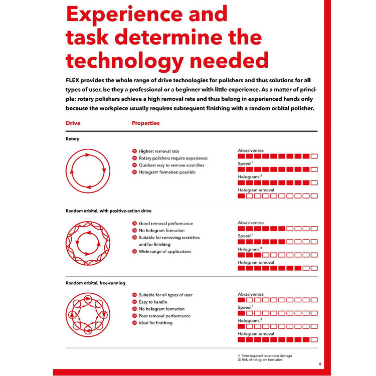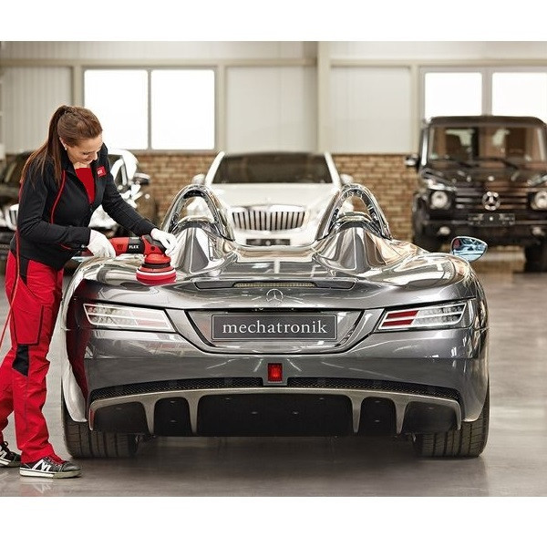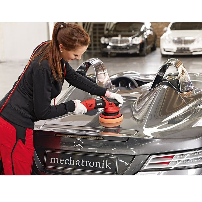 دستگاه XFE 7-15 150 Random Orbital یک پولیشر اوربیتال تمام صنعتی و حرفه ای جهت پرداخت رنگ از محصولات شرکت «فلکس» (Flex) آلمان با بیش از 100 سال سابقه و مخترع سنگ فرز می باشد. شرکت فلکس معروفترین و معتبرترین شرکت آلمان در زمینه تولید انواع پولیشر های برقی و شارژی می باشد. دستگاه های پولیش فلکس به سه دسته --- چرخشی یا (Rotary) --- Random orbital, with positive-action drive --- Random orbital, free-running تقسیم می شوند. دسته اول یا Rotary بالاترین قدرت سایش را داشته اما ایجاد هولوگرام بر روی رنگ می کند و لذا استفاده آن فقط برای افراد حرفه ای و با تجربه بالا مناسب می باشد. دسته دوم یا Random orbital, with positive-action drive قدرت سایش خوبی داشته و از ایجاد هولوگرام جلوگیری می کند. این دسته برای رفع خط و خش و پرداخت مناسب بوده و دارای طیف وسیعی از کاربرد می باشد. این دسته برای افراد حرفه ای و غیر حرفه ای مناسب است. دسته سوم یا Random orbital, free-running قدرت سایش پایینی داشته و معمولا برای رفع عیوب مرتبط با هولوگرام پرداخت استفاده می شود. این دسته برای پولیش دو مرحله ای بعد از استفاده از پولیشر دسته اول مناسب است. دستگاه XFE 7-15 150 از نوع دسته سوم یعنی Random orbital, free-running می باشد.