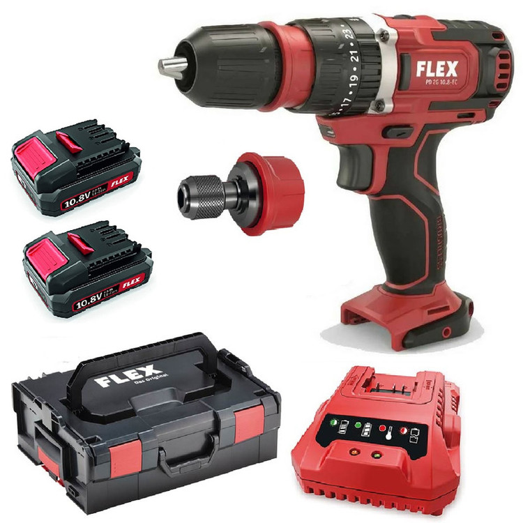 دستگاه PD 2G 10.8-EC یک پیچ گوشتی دریل چکشی تمام صنعتی و حرفه ای از محصولات شرکت «فلکس» (Flex) با بیش از 100 سال سابقه و مخترع سنگ فرز می باشد. این دریل پیچ گوشتی از موتور بدون ذغال برخوردار بوده که عمر و قدرت موتور را افزایش داده و مصرف انرژی آنرا کاهش می دهد. حداکثر گشتاور این ابزار 58 نیوتن متر بوده که قویترین پیچ گوشتی در کلاس 10.8 ولت محسوب می گردد. علی رغم قدرت بالای این ابزار، وزن آنها با باتری تنها 1.4 کیلوگرم می باشد. از دیگر ویژگی های این ابزار جدا شدن سه نظام آن و امکان اتصال نگهدارنده بیت و یا سره چپقی می باشد. لازم به ذکر است نگهدارنده بیت همراه ابزار بوده اما سره چپقی باید جداگانه خریداری شود. از دیگر مزایای این ابزار قابلیت چکشی آن است که امکان سوراخکاری در مصالح ساختمانی نظیر بتن، سیمان، سنگ و .... را میسر می سازد. این ابزار از تکنولوژی باتری لیتیوم یون استفاده کرده که منجر به افزایش طول عمر باتری و عملکرد آن خواهد شد. سه نظام این ابزار اتوماتیک بوده و این ابزار داخل کیف شکیل فلکس مدل L-Boxx ارائه شده می گردد. شرکت فلکس در سال 1922 در منطقه Bad Cannstatt نزدیک اشتوتگارت آلمان توسط Ackermann و Schmitt تاسیس گردید. در همان سال سنگ فرز MS6 با شفت Flexible و در سال 1954 اولین سنگ فرز سرعت بالای دنیا تحت عنوان DL9 توسط شرکت فلکس اختراع شد. هم اکنون شرکت فلکس معروفترین و معتبرترین تولید کننده پولیشر برقی و شارژی محسوب گردیده و تخصص آن تولید انواع ابزارآلات برقی و شارژی در صنایع خودرو، کار با فلزات، پرداخت سنگ و ابزارآلات مرتبط با ساخت و ساز و بازسازی می باشد.