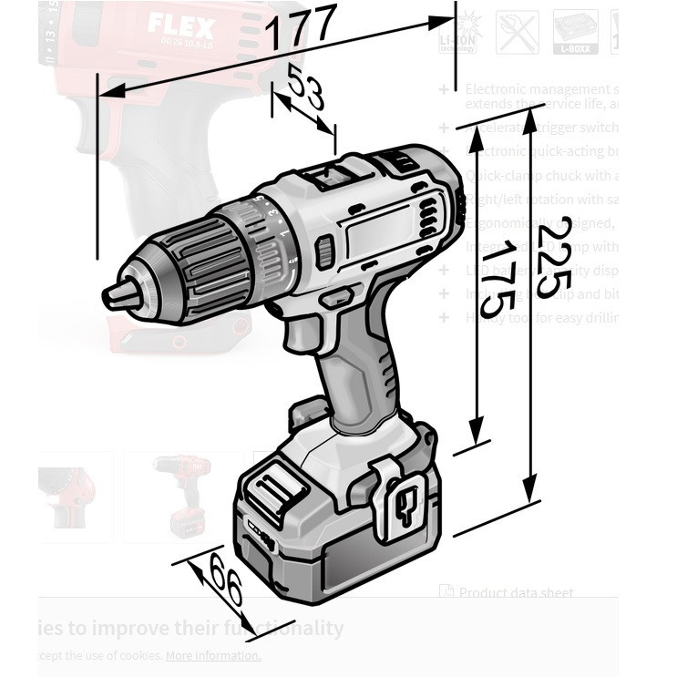 دستگاه DD2G 10.8-LDBC/2.5 یک پیچ گوشتی دریل از محصولات شرکت «فلکس» (Flex) با بیش از 100 سال سابقه و مخترع سنگ فرز می باشد. حداکثر گشتاور این ابزار 34 نیوتن متر بوده که در کلاس 10.8 ولت بسیار قدرتمند محسوب می گردد. علی رغم قدرت بالای این ابزار، وزن آن با باتری تنها 1.135 کیلوگرم می باشد که با احتساب قدرت خروجی آن فوق العاده سبک می باشد. این ابزار از تکنولوژی باتری لیتیوم یون استفاده کرده که منجر به افزایش طول عمر باتری و عملکرد آن خواهد شد. باتری این ابزار 10.8 ولت و 2.5 آمپرساعت بوده که برای استفاده حرفه ای نیز کفایت لازم را دارد. سه نظام این ابزار اتوماتیک بوده و این ابزار داخل کیف پلاستیکی فلکس به همراه دو عدد باتری و شارژر ارائه شده می گردد. شرکت فلکس در سال 1922 در منطقه Bad Cannstatt نزدیک اشتوتگارت آلمان توسط Ackermann و Schmitt تاسیس گردید. در همان سال سنگ فرز MS6 با شفت Flexible و در سال 1954 اولین سنگ فرز سرعت بالای دنیا تحت عنوان DL9 توسط شرکت فلکس اختراع شد. هم اکنون شرکت فلکس معروفترین و معتبرترین تولید کننده پولیشر برقی و شارژی محسوب گردیده و تخصص آن تولید انواع ابزارآلات برقی و شارژی در صنایع خودرو، کار با فلزات، پرداخت سنگ و ابزارآلات مرتبط با ساخت و ساز و بازسازی می باشد.